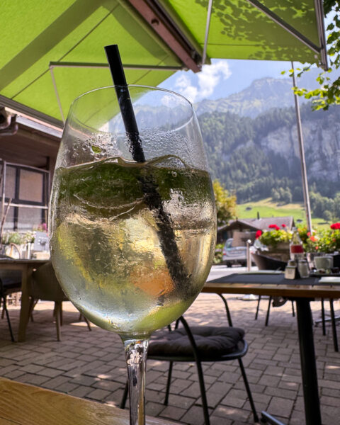 Today we got up really late, and we were going to eat lunch on the mountain, but we slept in too late, so we ate lunch in Lauterbrunnen with a view of the mountains.